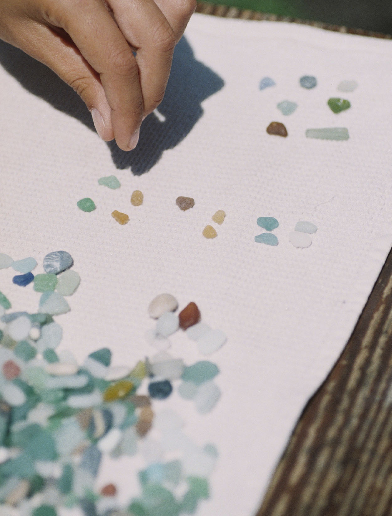 Després de recollir els tresors vora la mar, arriba el moment més especial: triar les parelles perfectes entre centenars de petites meravelles. No és fàcil, però segur que el resultat t’agradarà molt. Quan la llum del sol travessa els vidres, veuràs com brillen i il·luminen la teva cara, recordant la màgia del mar i l’essència de la joieria contemporània.