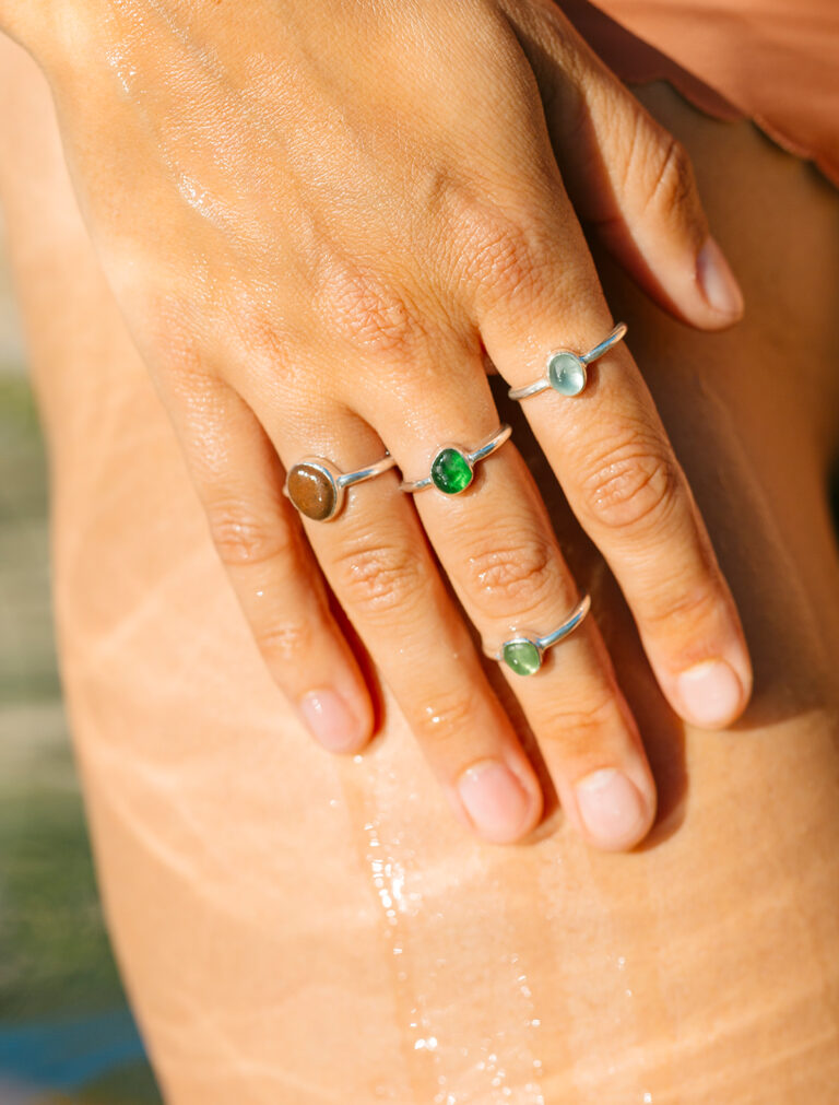 Després de recollir els tresors vora la mar, arriba el moment més especial: triar les parelles perfectes entre centenars de petites meravelles. No és fàcil, però segur que el resultat t’agradarà molt. Quan la llum del sol travessa els vidres, veuràs com brillen i il·luminen la teva cara, recordant la màgia del mar i l’essència de la joieria contemporània.